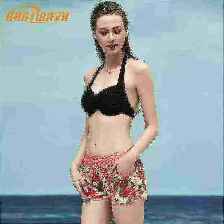 女沙滩裤可下水夏短休闲碎花速干运动三分短裤女宽松外穿睡裤女夏