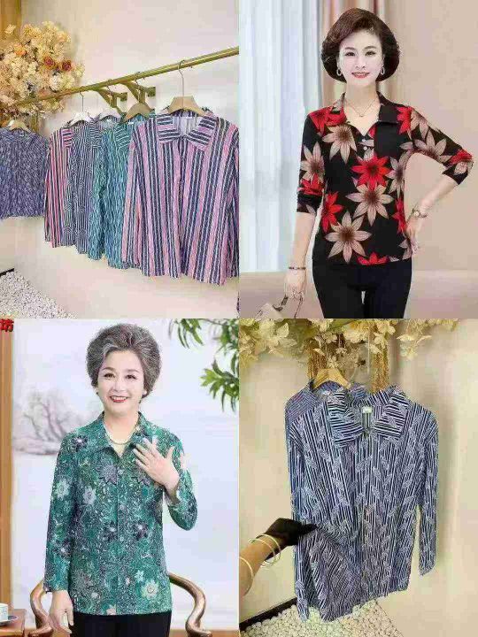 中老年妈妈长袖衫系列款[太阳]妈妈装秋冬碎花衬衫推荐...