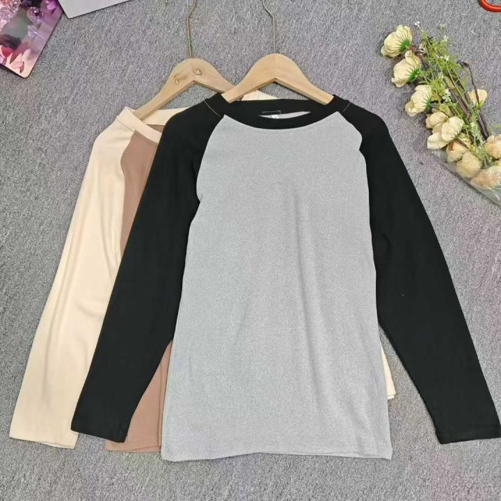 德绒圆领长袖秋冬季新款撞色修身百搭打底保暖上衣,独...
