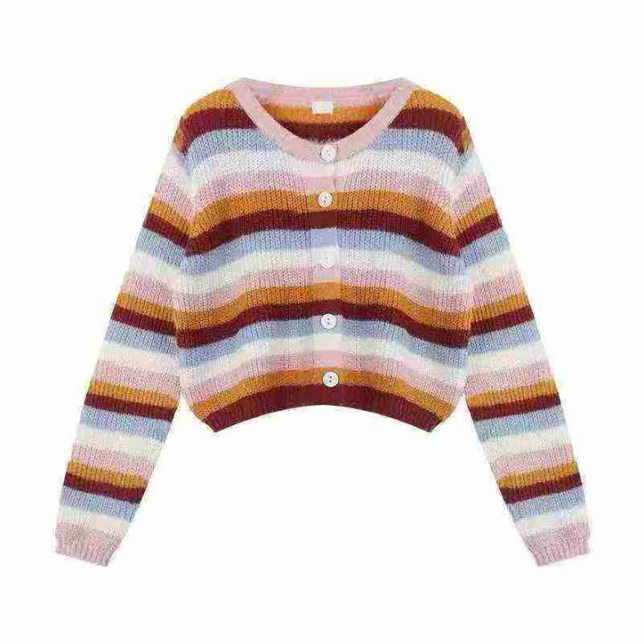 2025秋冬新款潮毛衣女显瘦休闲彩条针织外套开衫,独立...