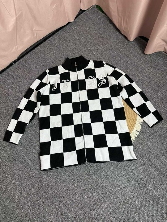 拉链针织衫外套女秋冬美式复古格子设计感小众宽松百搭开衫毛衣潮,独立包装,均码,106件,清8.8