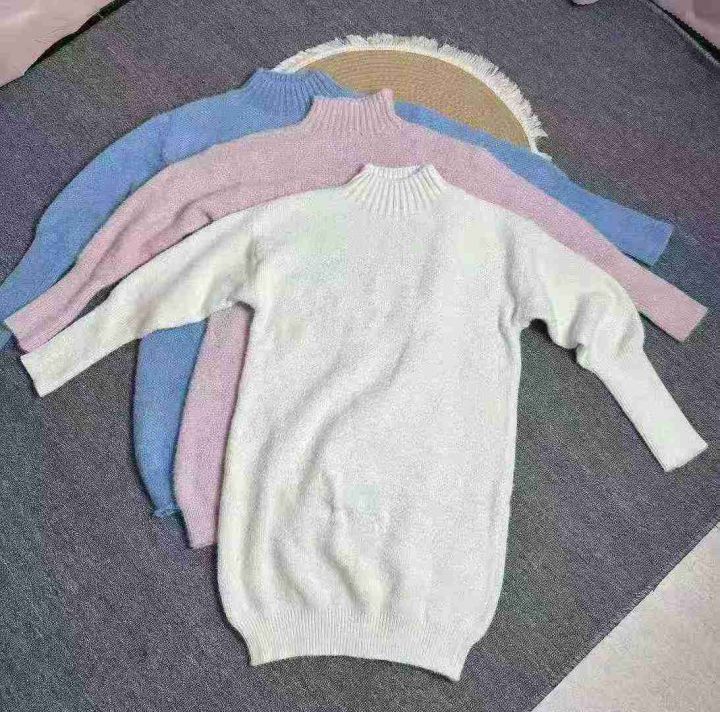 半高领慵懒风仿水貂毛毛衣女早秋新款加厚打底宽松针织连衣裙,独立包装,均码,256件,清9.5,分➕1