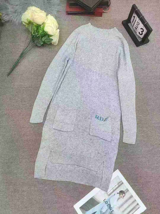 秋冬新款圆领针织长袖中长款针织裙显瘦百搭打底裙,独立包装,均码,500件左右,清8.5,分➕1