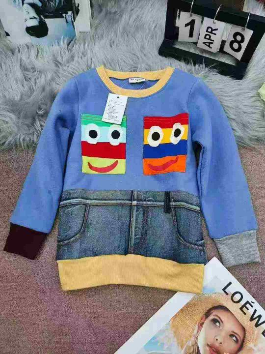 4.8清,190件童装加绒圆领印花套头卫衣,码数95-140,独立包装带吊牌。...