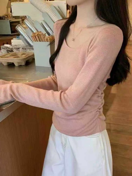 秋冬新款法式气质设计款弹力修身显瘦针织套头羊毛衫,...