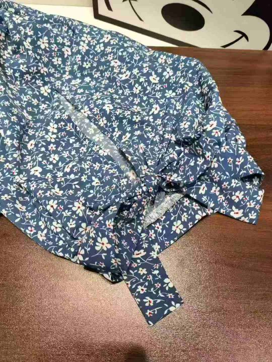 夏新款印花木耳边抽绳灯笼裤复古宽松飘逸薄休闲裤,独...