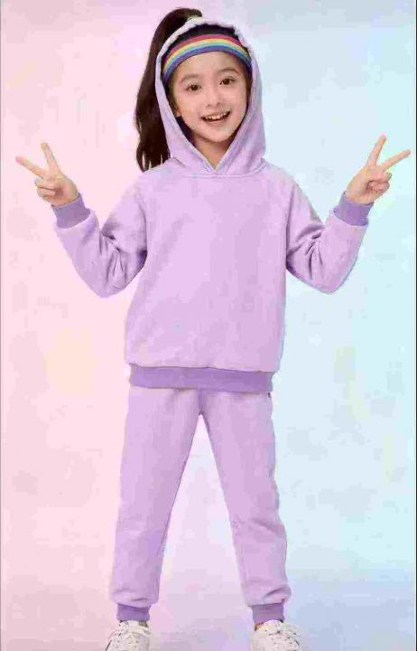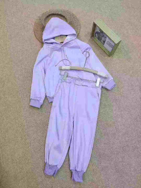 [月亮]:潮童香芋紫加绒连帽休闲套装