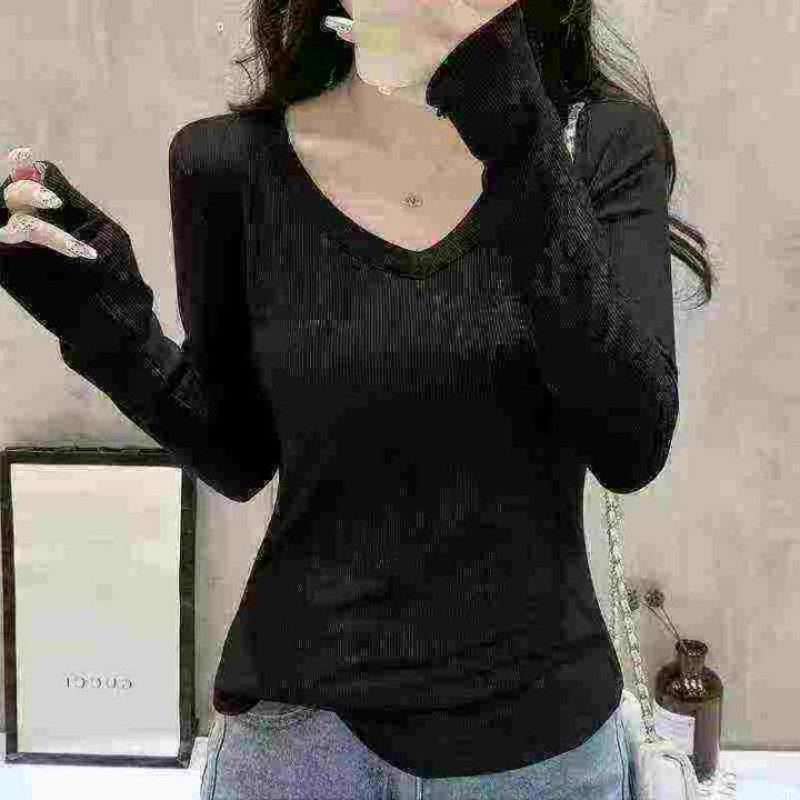 [月亮]:5.9清800件[月亮]:简约内搭外穿高弹V领长袖T...