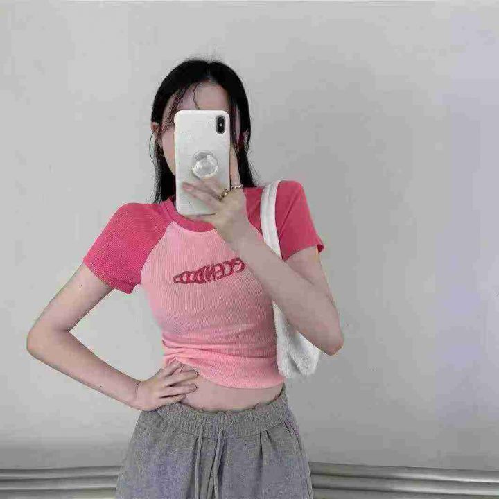 [月亮]:纯欲风美式辣妹刺绣短袖T恤