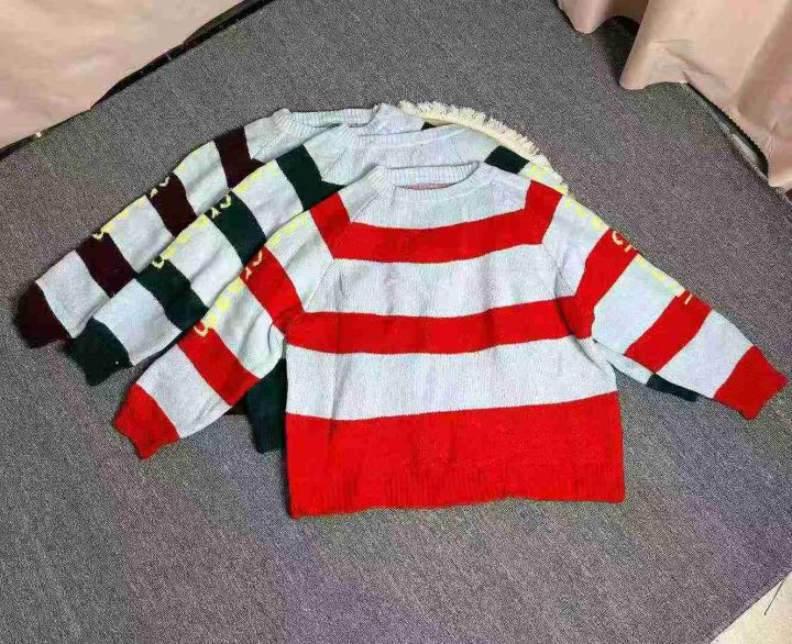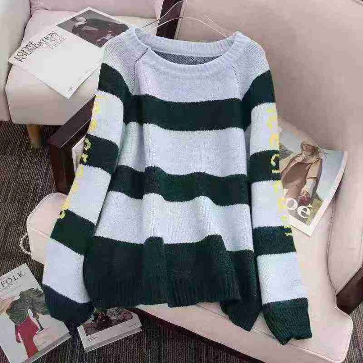 女装秋冬款复古撞色条纹ins港风大版厚重宽松毛衣针织衫上衣,独立包装,均码,633件,清8.8,分➕1