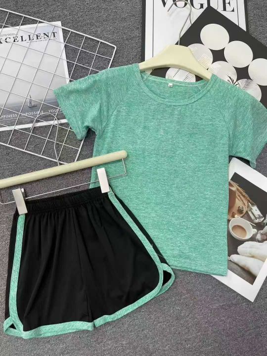 夏装新款童装速干运动套装男童两件套女童短袖短裤儿童短袖短裤套装952套全清8.8 分货+1 ,高弹力码数110-150,单款4个色,独立包装,大货女童色粉色玫红比较多,男童色蓝色绿色少~