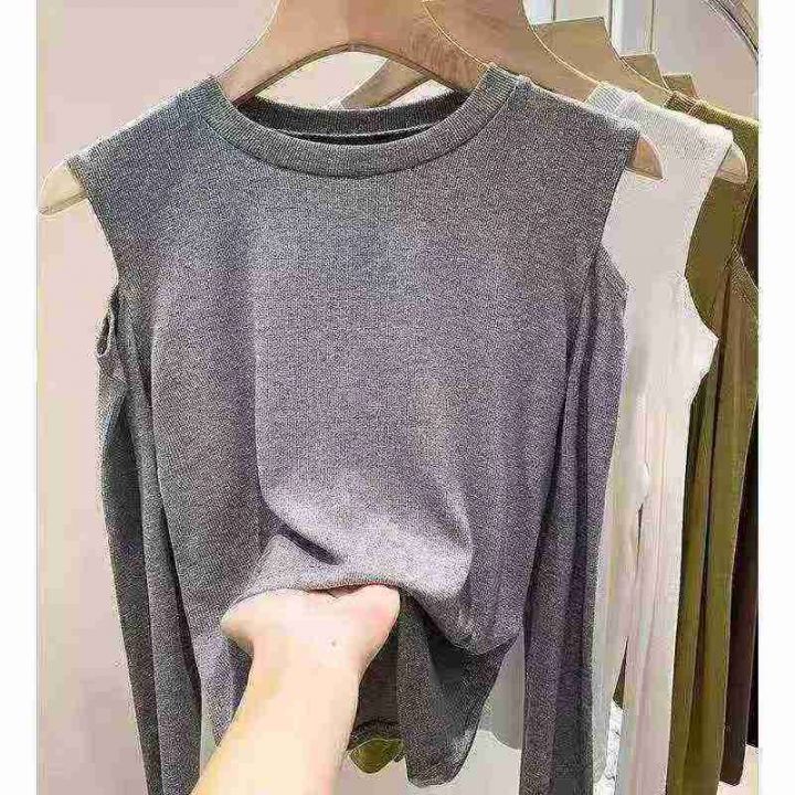 ☕️春秋性感露肩上衣显瘦莫代尔t恤女长袖外穿圆领打...