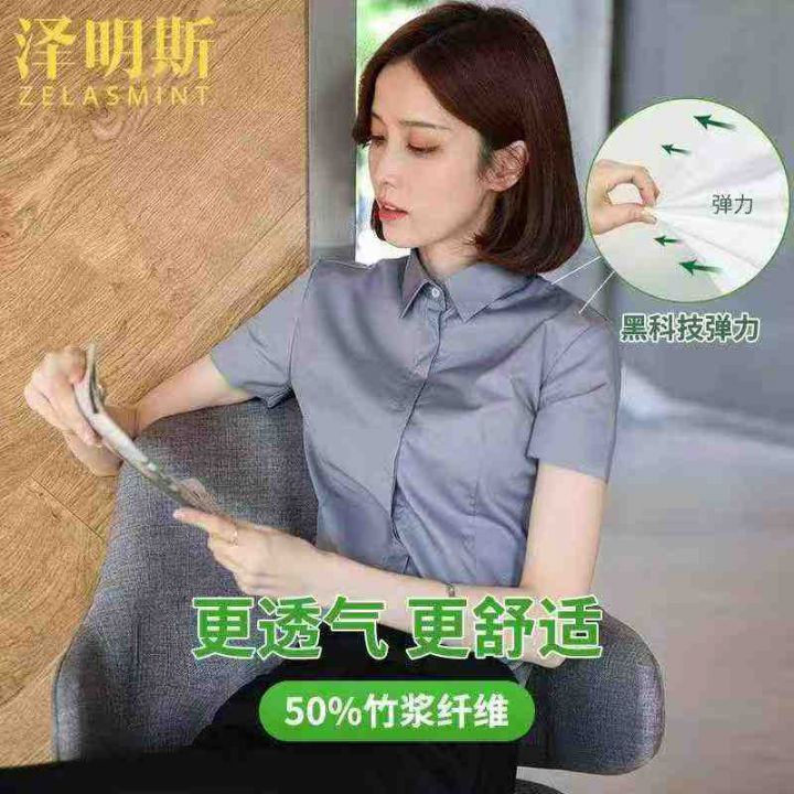 高级感竹棉纤维女同款职业装短袖夏季衬衫.独立包装.S...