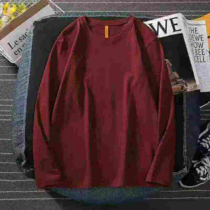 男女同款纯色长袖T恤☕️600件全清5.8元分货6.8元。码数Xs到3xl,独立包装,单款单色 ,本命年酒红色纯色长袖T恤男春秋新款圆领纯棉宽松长袖打底衫男