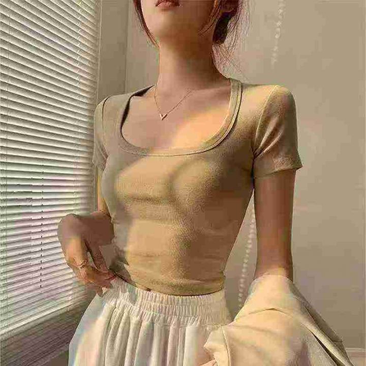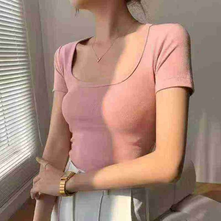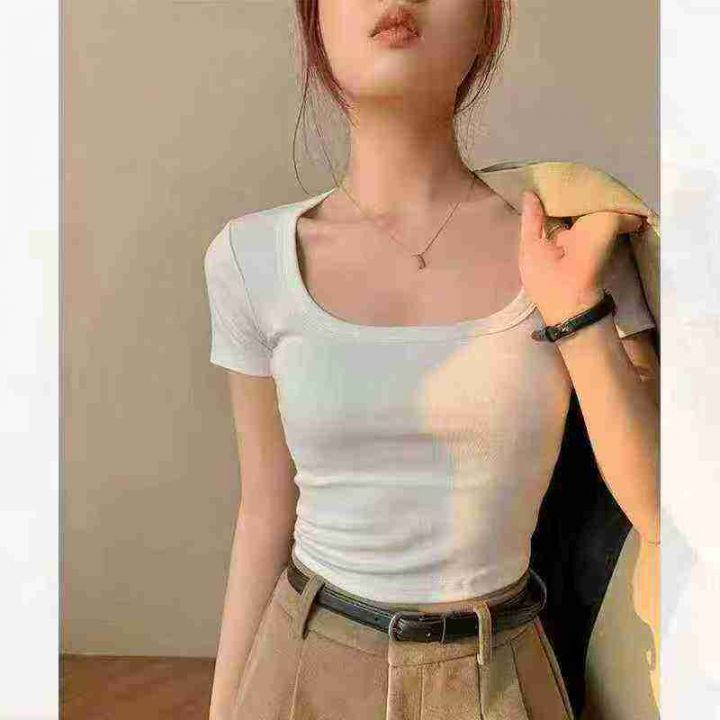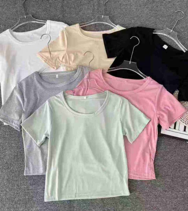 冰丝罗纹辣妹T恤☕️350件全清6.8元,分货7.8元,码数S到XXL(1-5码),独立包装,图片6色,高弹力高腰短款辣妹短袖t恤紧身独特绝美短款圆领上衣女