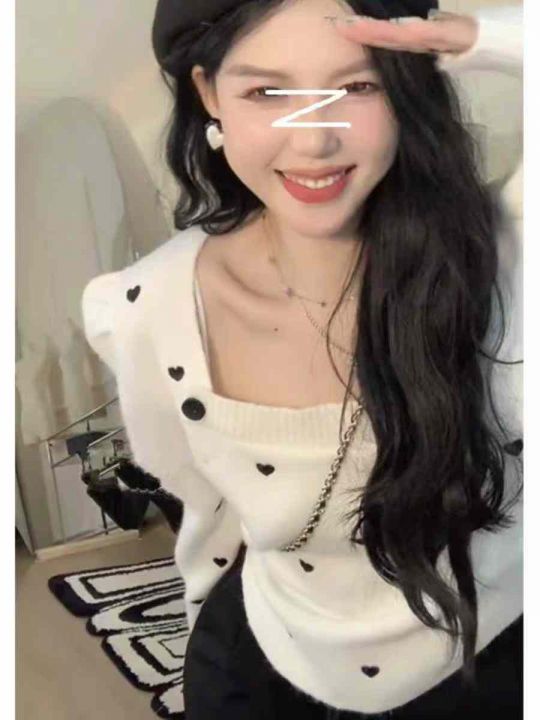秋冬新款法式气质方领宽松爱心波点提花可爱泡泡袖套头...