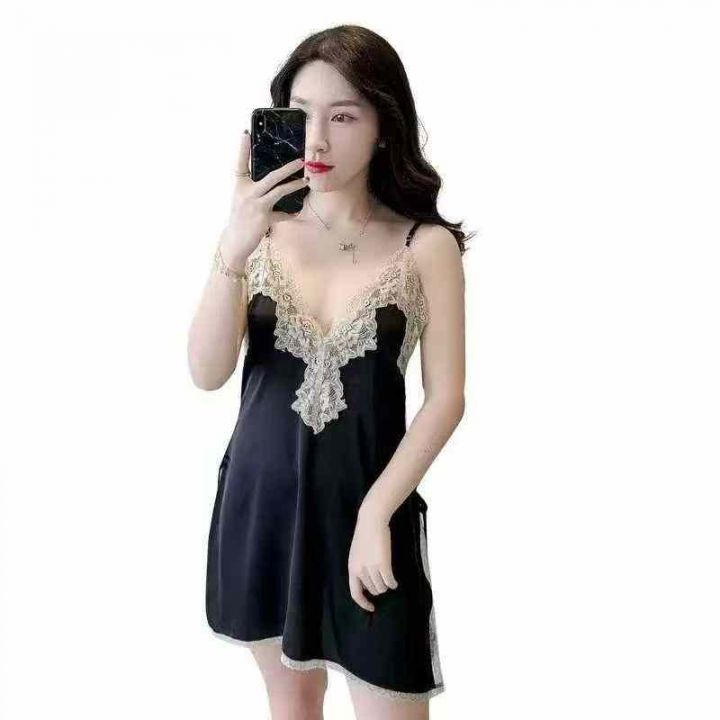 夏季新款性感纯欲诱惑仿真丝冰丝吊带睡裙,独立包装,...