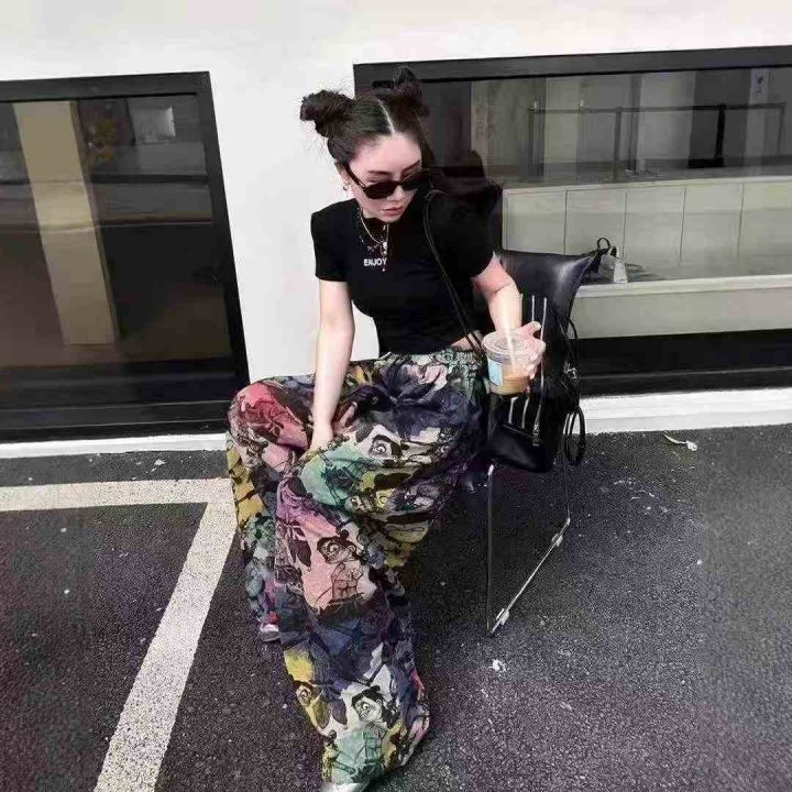 扎染哪吒图印阔腿裤1075件6.5,面料舒适高弹力,松紧...