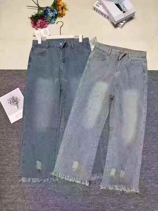 款号:K850#时尚洋气毛边破洞直筒牛仔裤550件,码数:XS-3XL,整款两色,品...