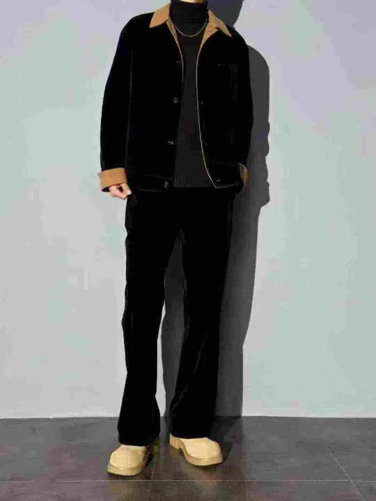 全清价17.9元爆款加绒加厚套装棉服男士棉裤两件套潮流百搭翻领时尚外套休闲...