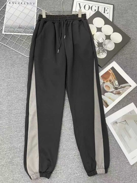 大码美式运动裤女加绒秋冬季宽松显瘦胖mm复古拼接束脚休闲哈伦裤150条全清11.8元,码数M到3XL,独立包装,内里加绒加厚婴儿绒,外层纯棉质量