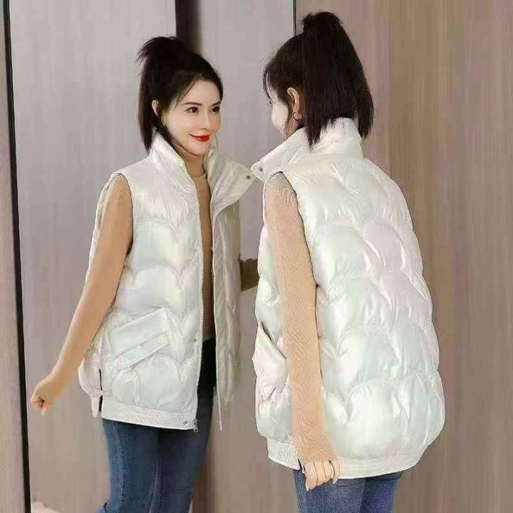 亮面免洗羽绒棉马甲女韩版宽松坎肩背心外套,独立包装...