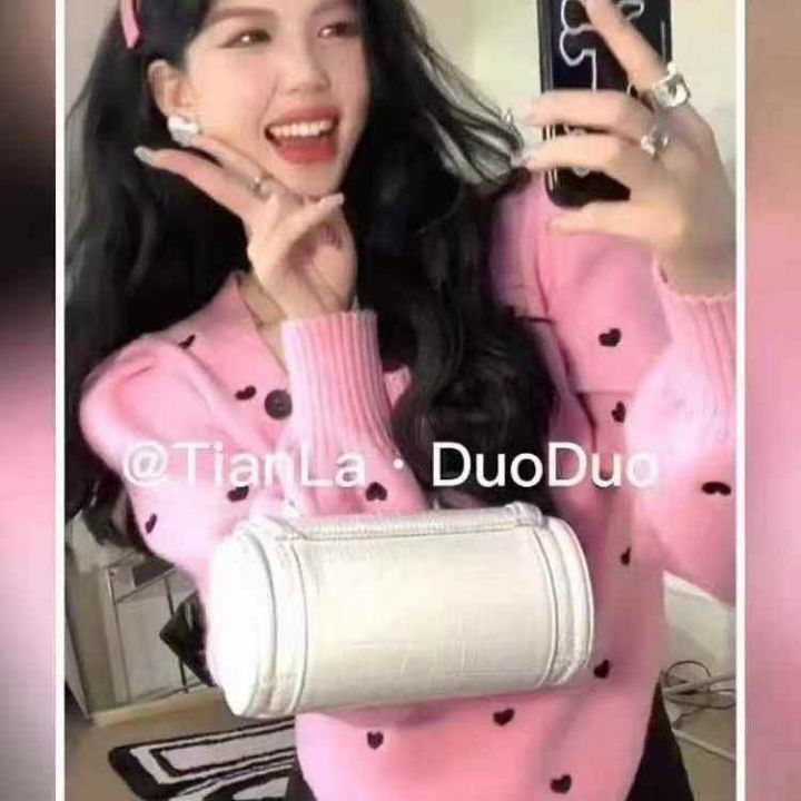 秋冬新款法式气质方领宽松爱心波点提花可爱泡泡袖套头...