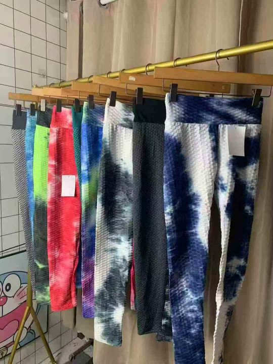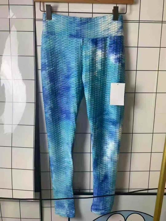 4.5清588件女高腰扎染性感提花瑜伽健身蜜桃翘臀泡泡裤女收腹提臀打底长裤户外跑步健身修身运动 码数S-ⅩL 独立包装