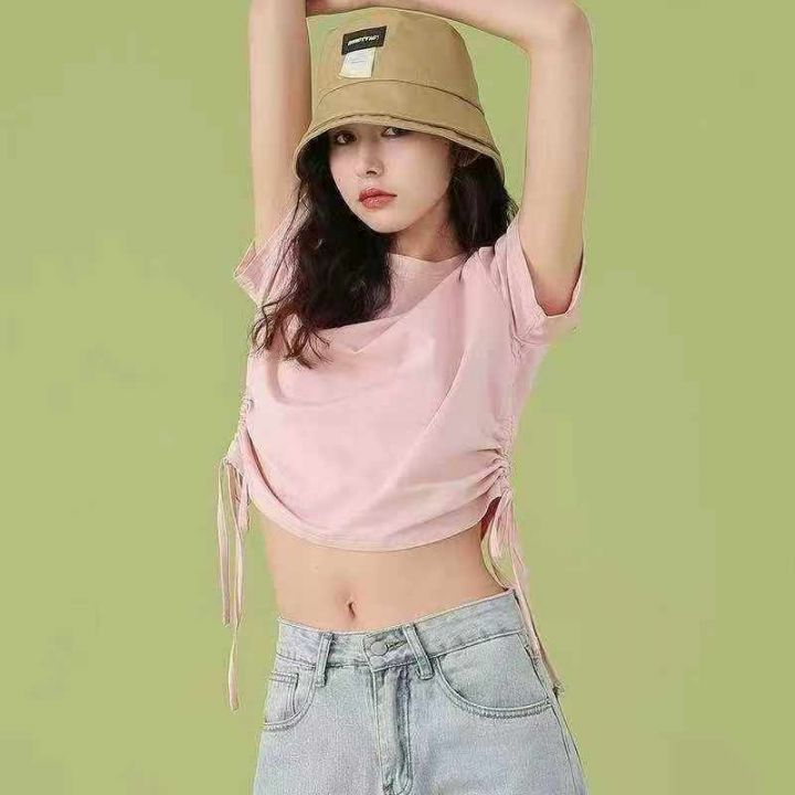 1000多件美式正肩抽绳甜美辣妹设计感小众减龄修身短款体恤,尺码:XL~4XL,面料柔软有弹力,后领包边包条,零次品,全清捡漏价5.8元,分