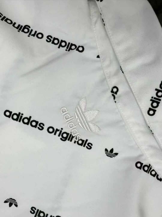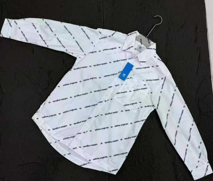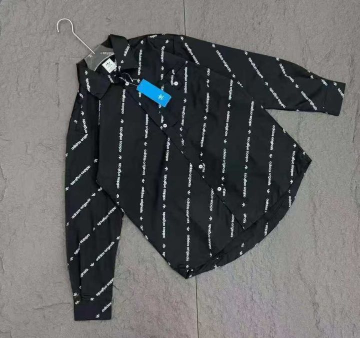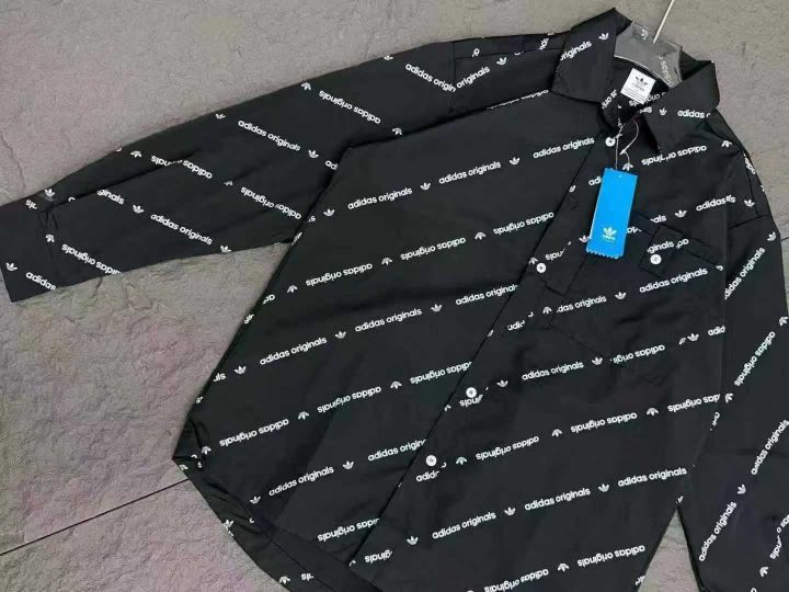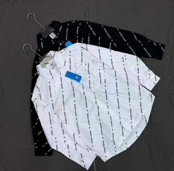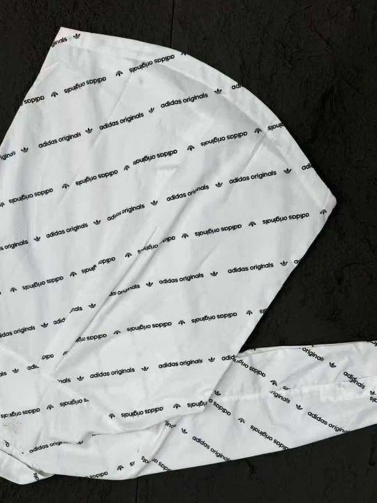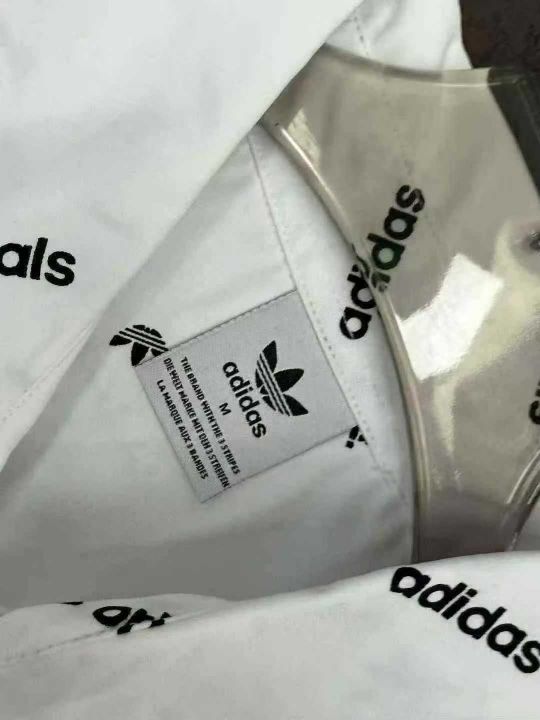 adidas originals三叶草 印花字母满印排扣长袖衬衫 男女同款 黑色 白色 专柜同款 800件处理!配清 100件起配。 货号:32539