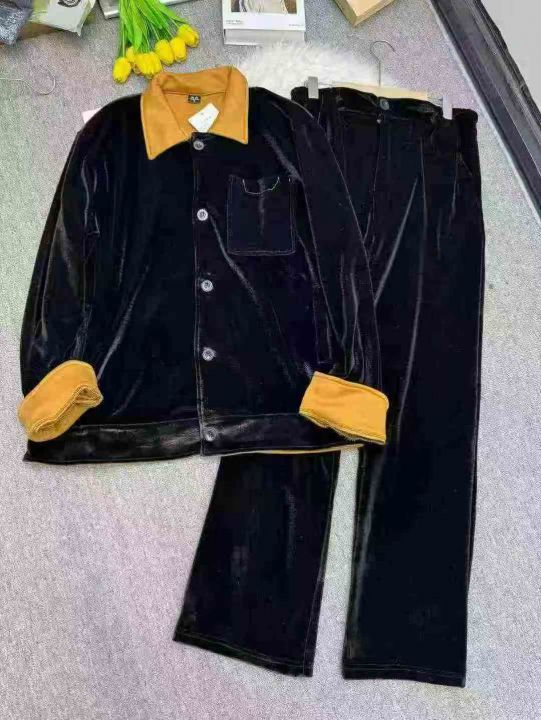 翻领灯芯绒保暖套装女2025冬季加绒加厚宽松显瘦卫衣直筒裤两件套,数量230...