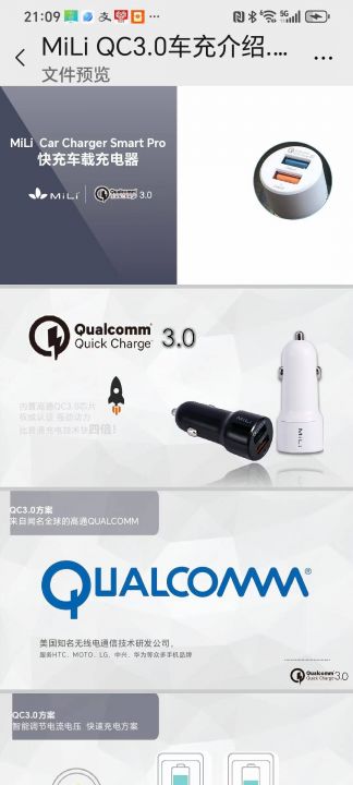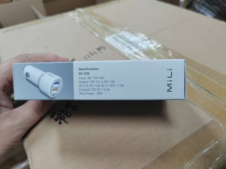 MiLi QC3.0 车载快充 高通方案 最大功率30W 纸盒装628pcs 裸机1180pcs 需要私信
