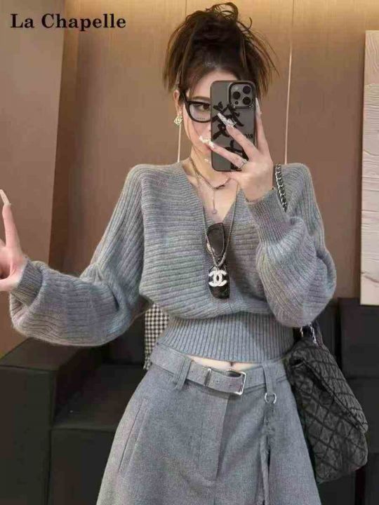① 法式温柔风女款秋冬V领长袖针织衫!独立包装,均码...