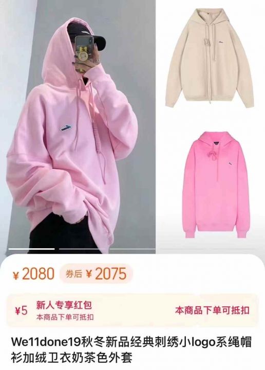 潮牌WE11DONE刺绣logo抽绳连帽卫衣毛圈面料为主,少量...