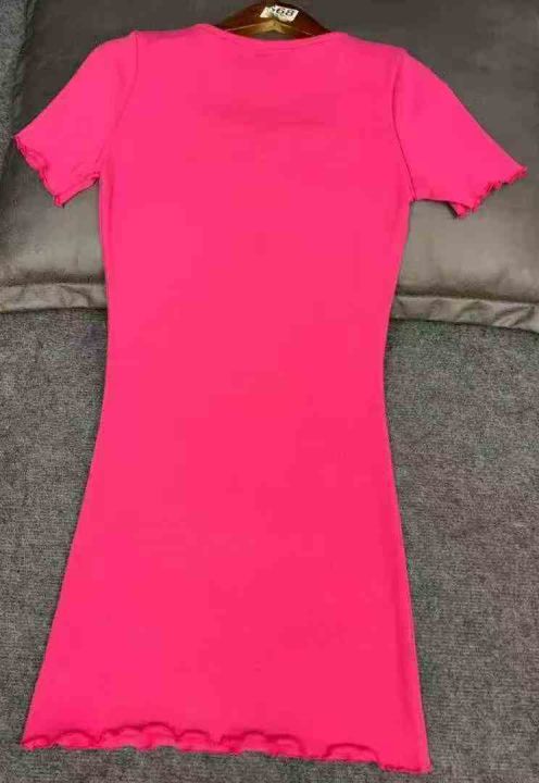 纯欲辣妹玫粉色方领短袖连衣裙修身收腰小个子性感包臀短裙160件,尺码S~L码...