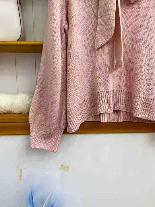 ① 法式轻奢甜美粉色圆领绑带针织毛衣!独立包装,均...
