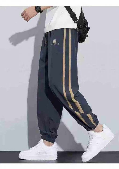☆春夏薄款杠条印花设计感束脚休闲裤,510件,M-3XL,...