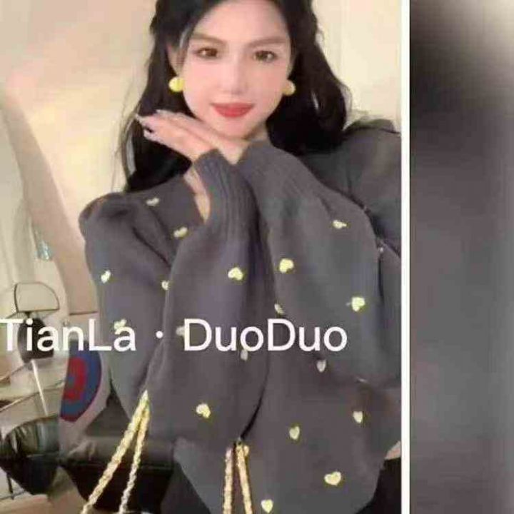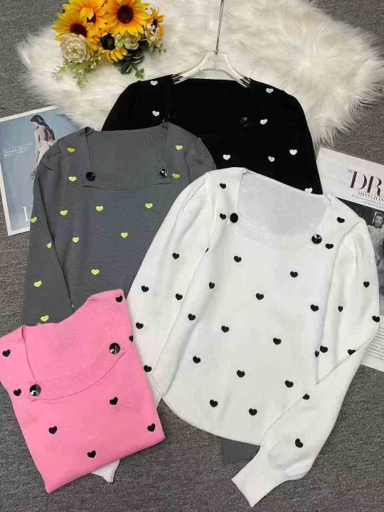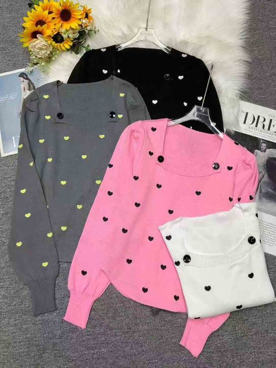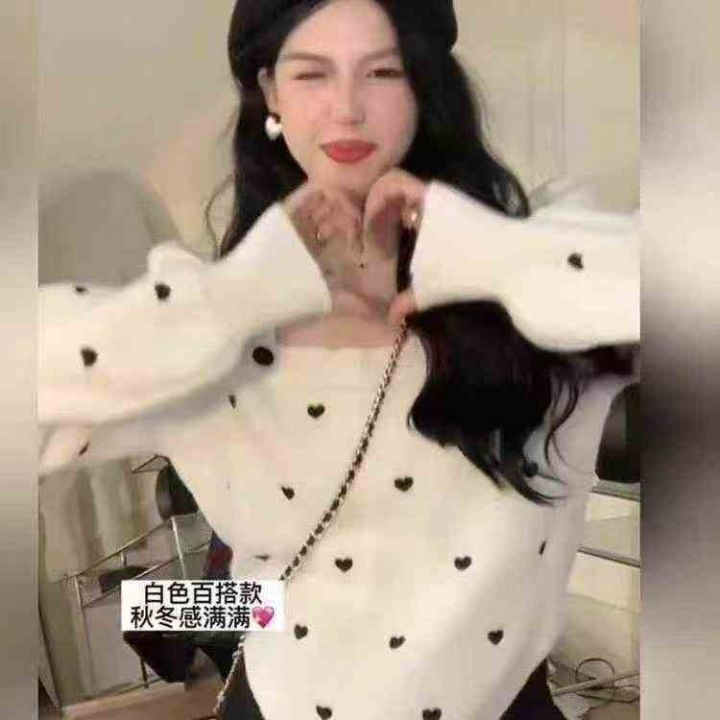 秋冬新款法式气质方领宽松爱心波点提花可爱泡泡袖套头毛衣,独立包装,均码面料柔软舒适弹力大,802件,全清6.9元超低价秒杀!分货加一!