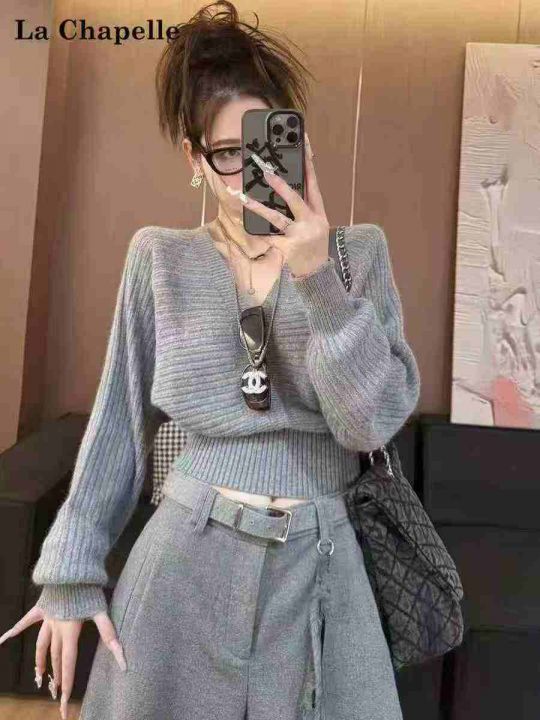 ① 法式温柔风女款秋冬V领长袖针织衫!独立包装,均码...