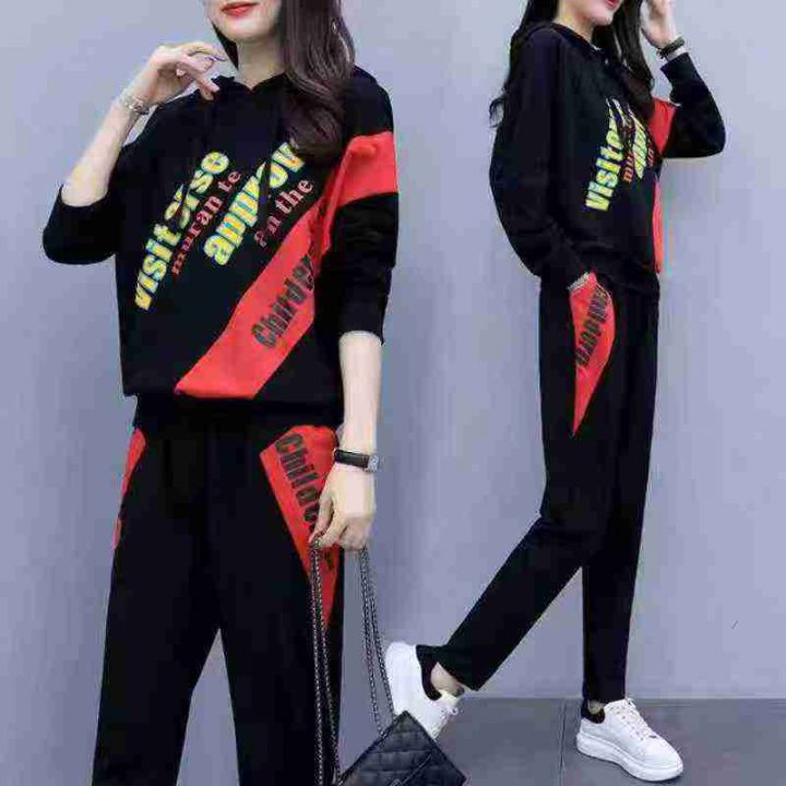 ☕️大码女装洋气减龄字母长袖运动卫衣套装春秋季新款胖mm显瘦遮肉两件套190套全清11.8元,码数S到XL,独立包装[庆祝][庆祝][庆祝]~单款黑色