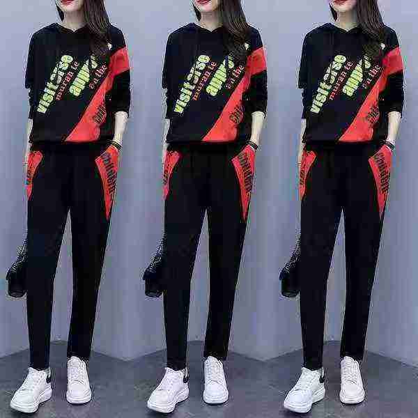 ☕️大码女装洋气减龄字母长袖运动卫衣套装春秋季新款胖mm显瘦遮肉两件套190套全清11.8元,码数S到XL,独立包装[庆祝][庆祝][庆祝]~单款黑色