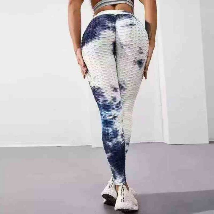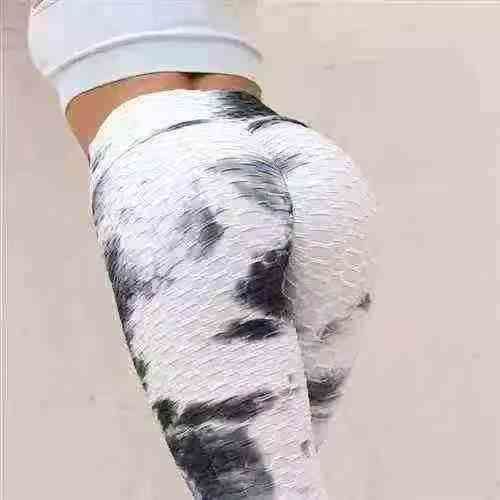 4.5清588件女高腰扎染性感提花瑜伽健身蜜桃翘臀泡泡裤女收腹提臀打底长裤户外跑步健身修身运动 码数S-ⅩL 独立包装