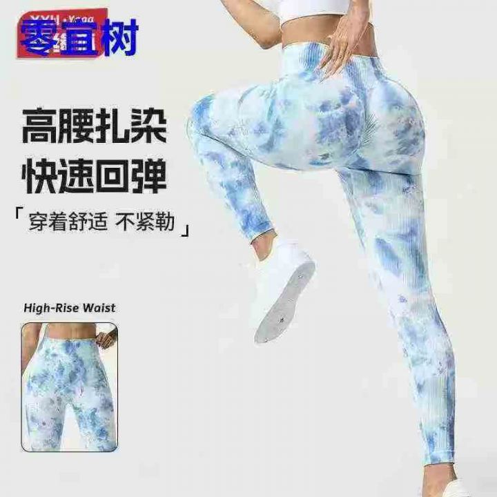 4.5清588件女高腰扎染性感提花瑜伽健身蜜桃翘臀泡泡裤...