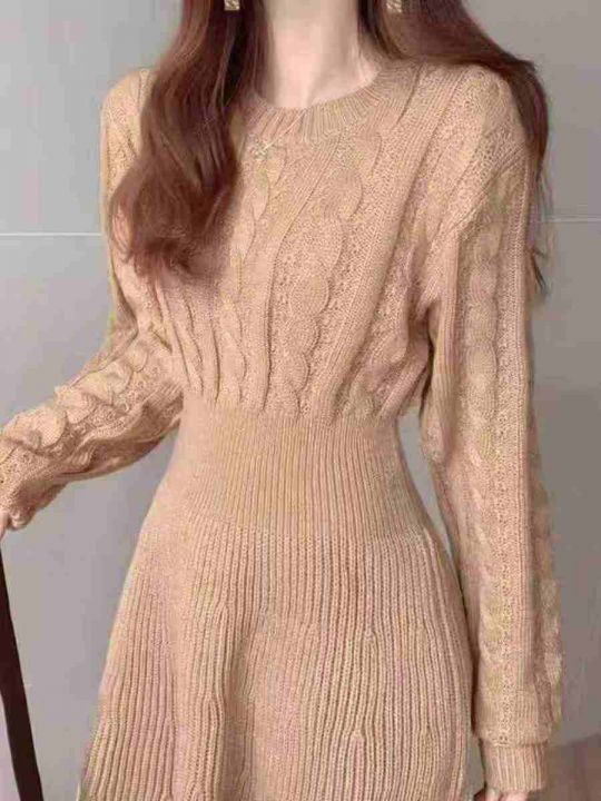 ① 法式复古针织秋冬装网红辣妹风超仙女长款毛衣裙!...