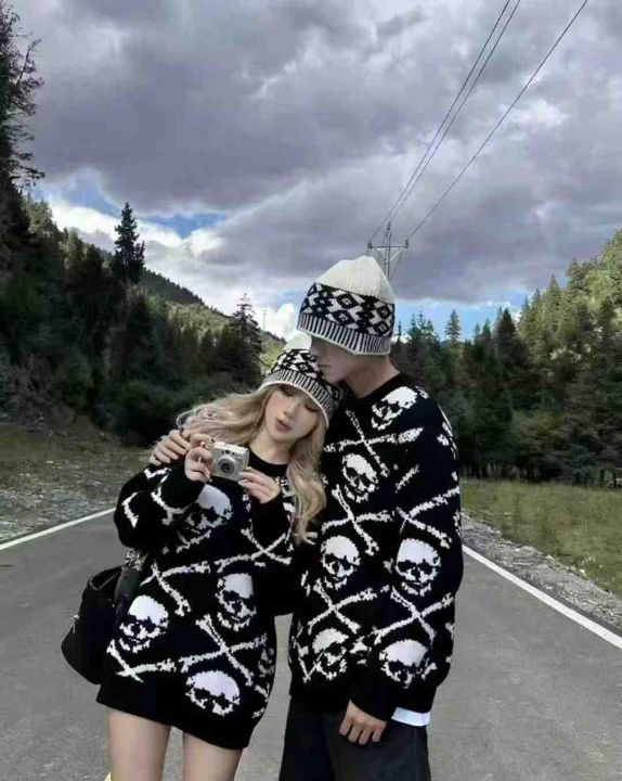 秋冬新款宽松慵懒风男女同款提花套头毛衣,独立包装,...