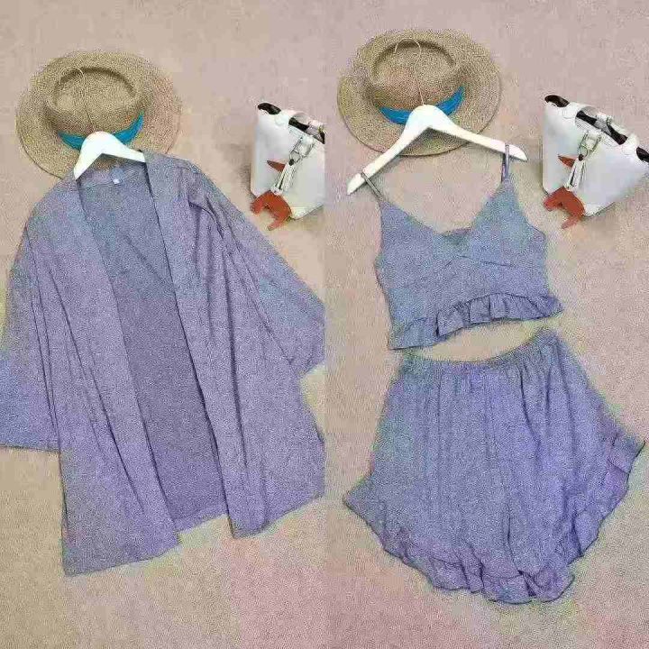 12.8,清386高级灰休闲吊带带胸垫家居三件套,23456码...