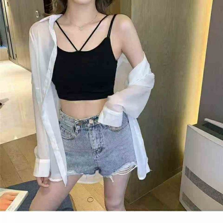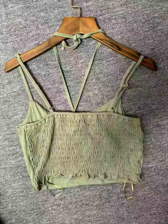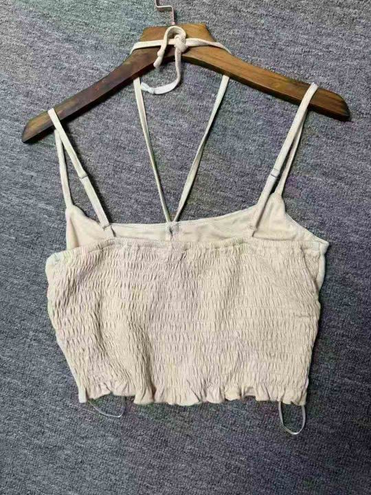 3.9清107件性感褶皱美背吊带背心少女内搭外穿辣妹设计...