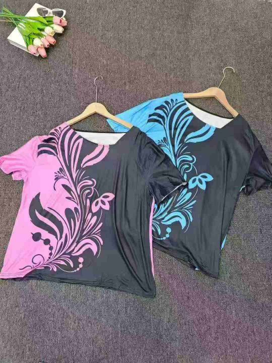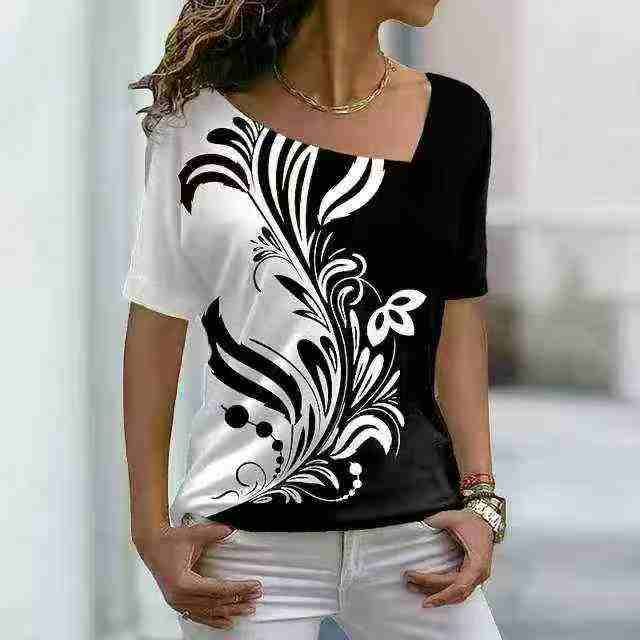 Printed Diagonal Neck Women\'s Short Sleeves印花斜领女式短袖