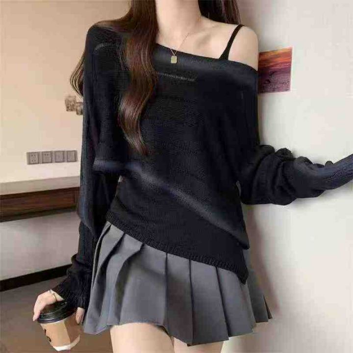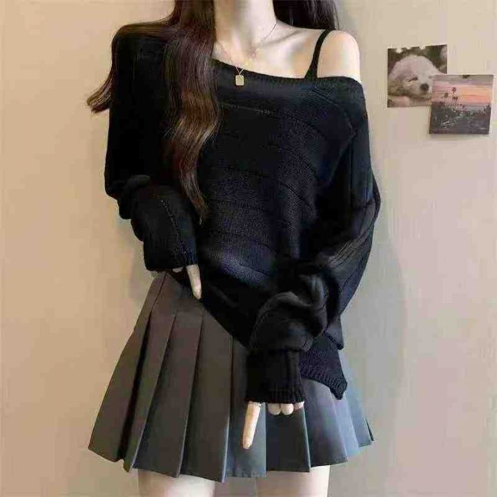 秋季新品美拉德色系宽松胖mm设计感长袖针织衫+冰丝吊...