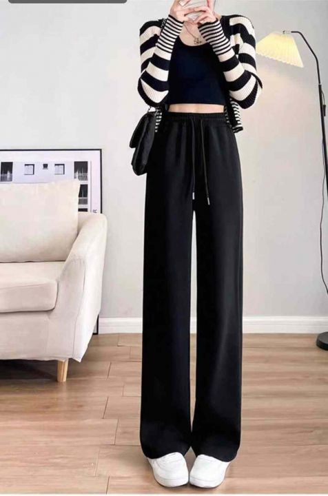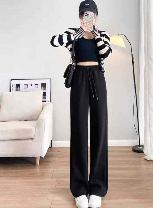 秋季新品窄版阔腿高腰垂感显瘦休闲直筒运动卫裤,独立...